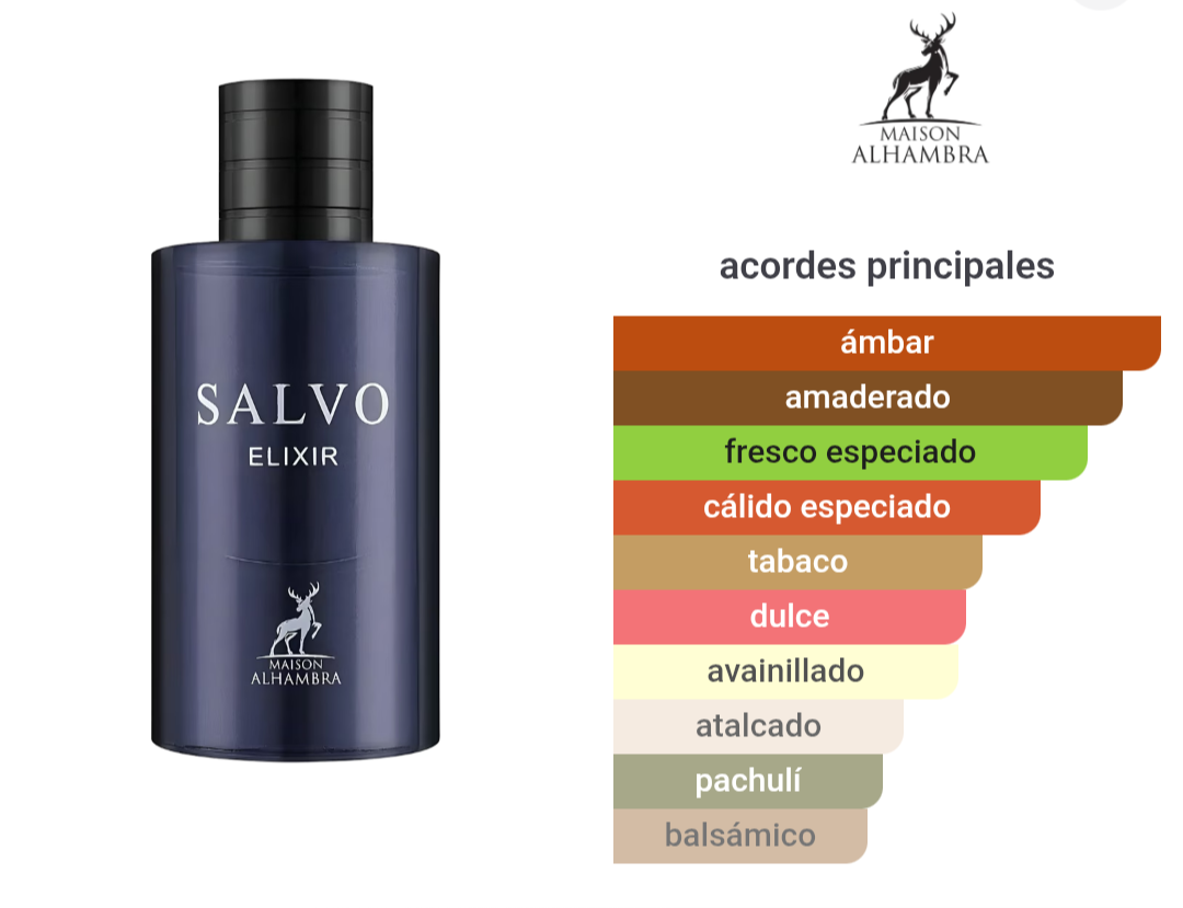 • Rendimiento Explosivo: Salvo Elixir es pura concentración; con muy pocas atomizaciones del decant proyectarás durante horas.
