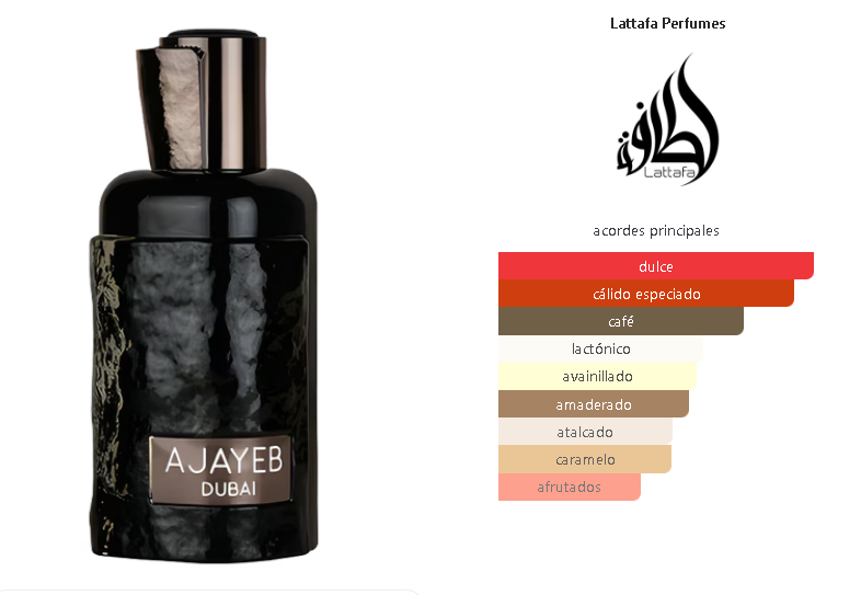 El Ajayeb Dubai es una invitación a los salones más exclusivos de Dubái. Es un perfume oscuro, sofisticado y profundamente envolvente. Si te gustan las fragancias que cuentan una historia y que se alejan de lo comercial, este perfume te va a atrapar. Es una mezcla magistral de notas amargas y dulces que proyectan una imagen de madurez, misterio y éxito.