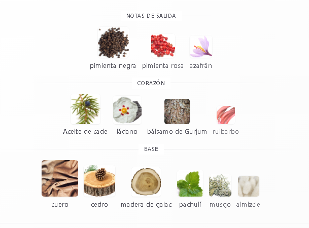 El corazón: Aquí aparece el lado más oscuro. Notas de cuero, resinas y un toque de incienso se mezclan para dar una sensación ahumada y profunda, como el aroma de una fogata de maderas finas.