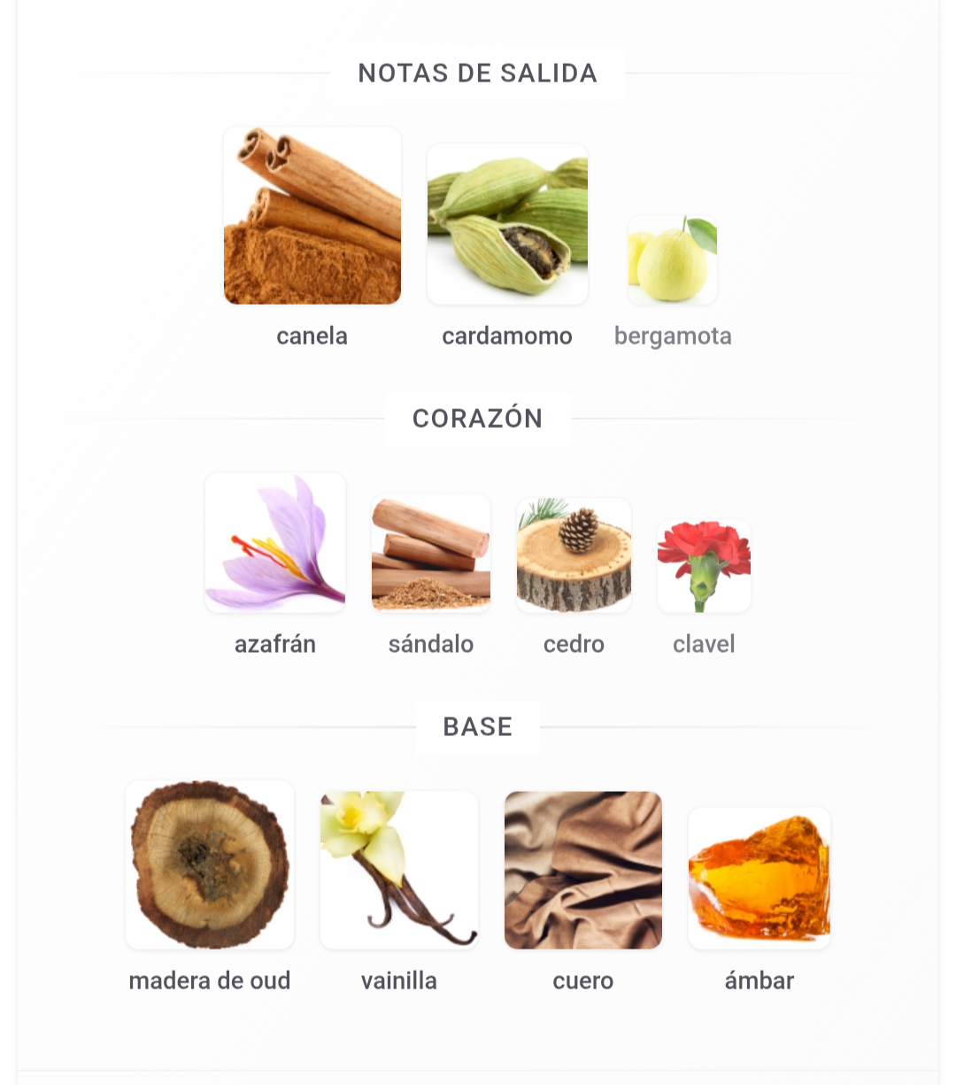 El Corazón: Notas de sándalo y cedro que aportan una textura cremosa y amaderada.