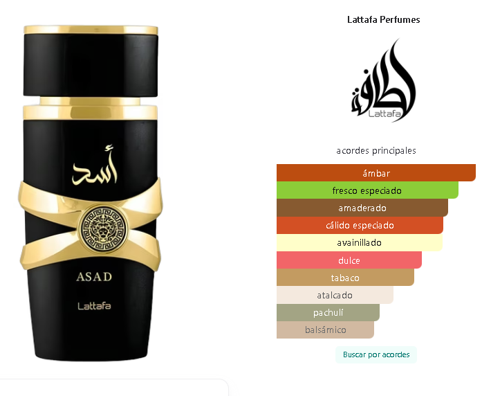 El Asad es uno de esos perfumes que imponen respeto apenas entrás a una habitación. Es una fragancia oscura, masculina y con mucha presencia, diseñada para el hombre que busca un aroma con "garra". Si te gustan los perfumes que se sienten picantes, amaderados y con un toque de dulzura misteriosa, el Asad es la pieza que le falta a tu colección.