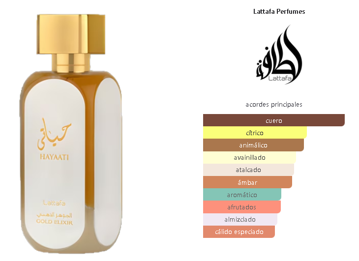 El Hayaati Gold Elixir es una fragancia vibrante que se siente como un rayo de sol. Es el perfume ideal para quienes buscan un aroma "jugoso", dulce y moderno, pero con un fondo ambarado que le da cuerpo y mucha presencia. Es un aroma que transmite confianza, optimismo y un magnetismo que atrae cumplidos apenas llegás a cualquier lugar.